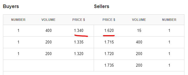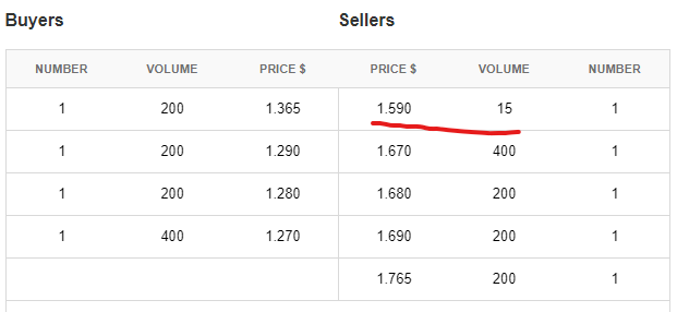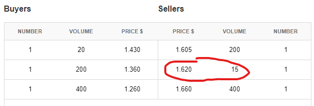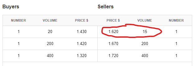 I'm left in the market with nobody wanting to accept my offer of 1.62.... so I drop my price a bit.